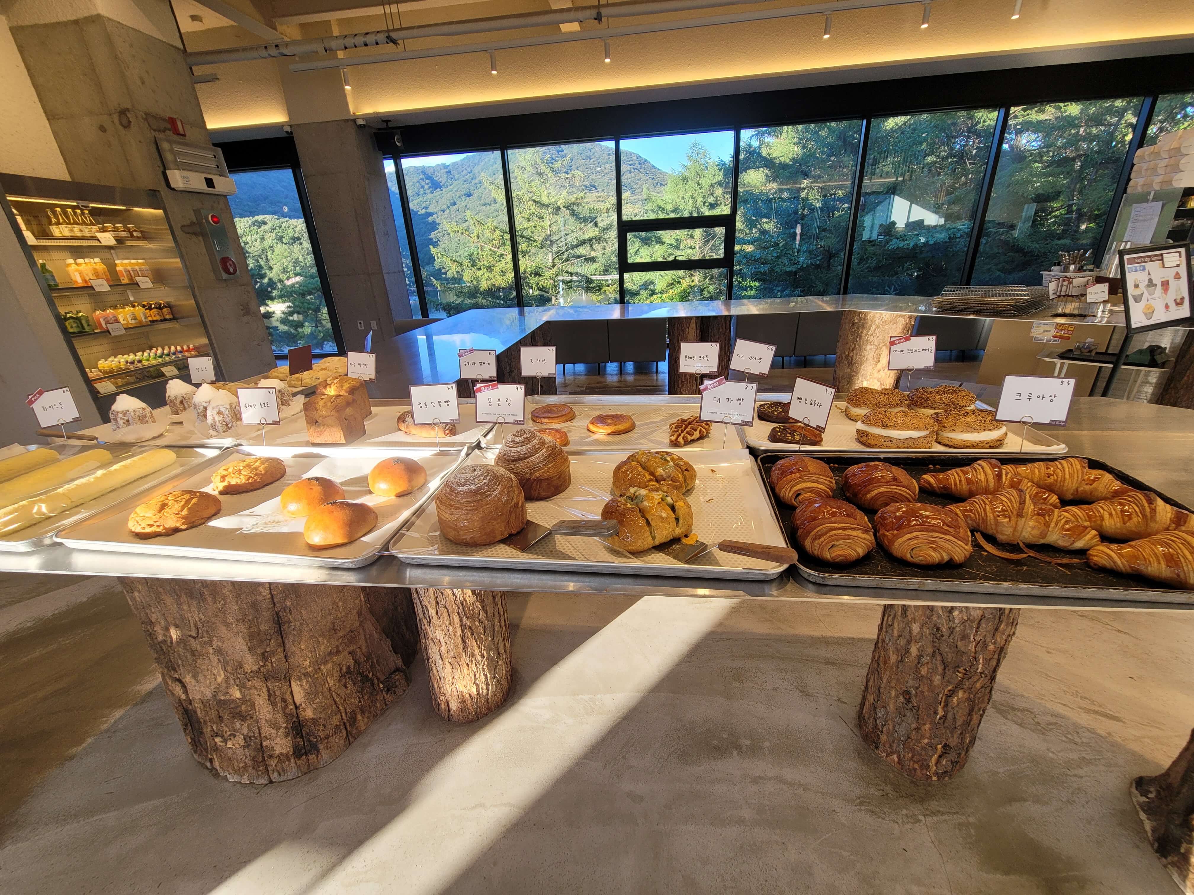레드브릿지 카페의 매력은 풍경과 함께 즐기는 디저트이다. 시그니처 음료와 케이크, 수제 베이커리가 특히 인기다.