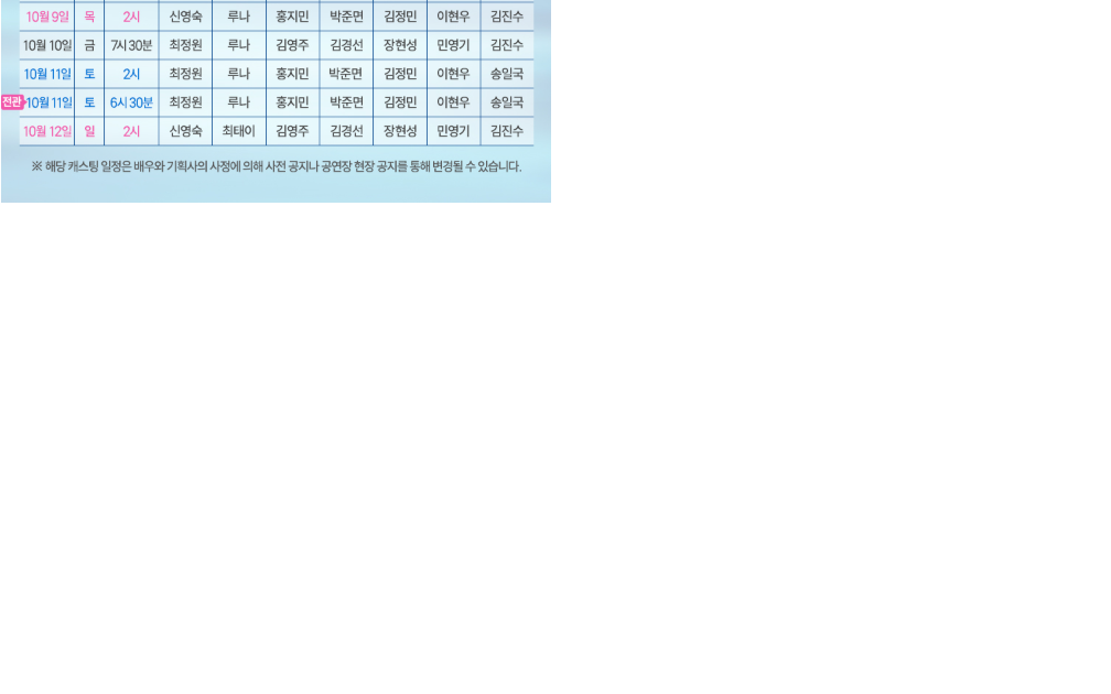 출연진 일정
