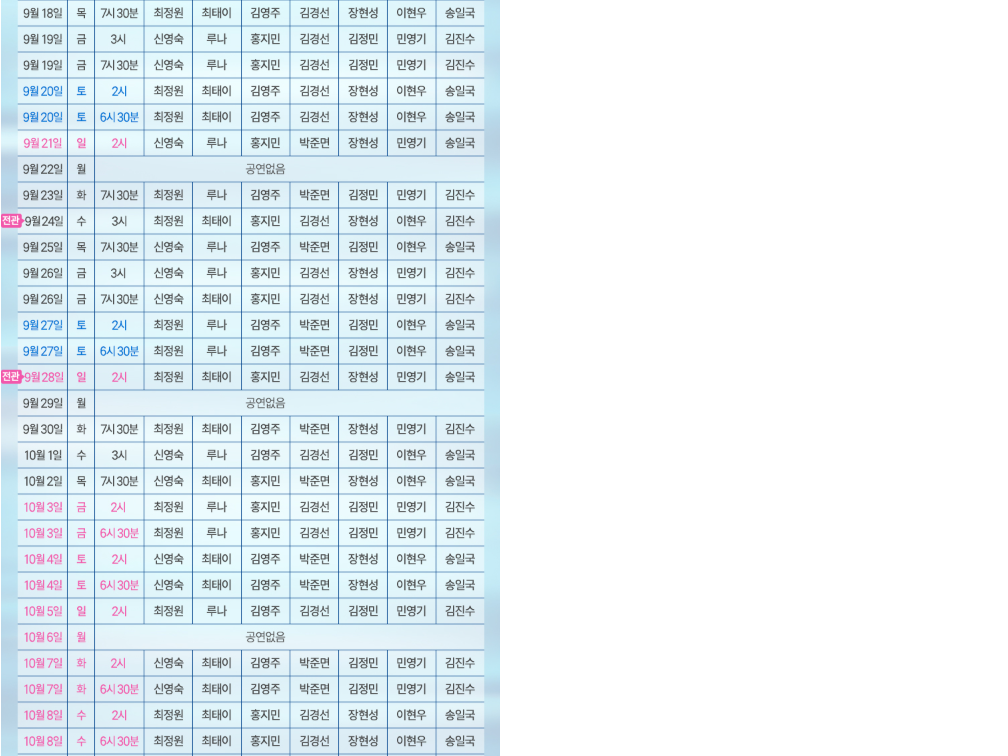 출연진 일정