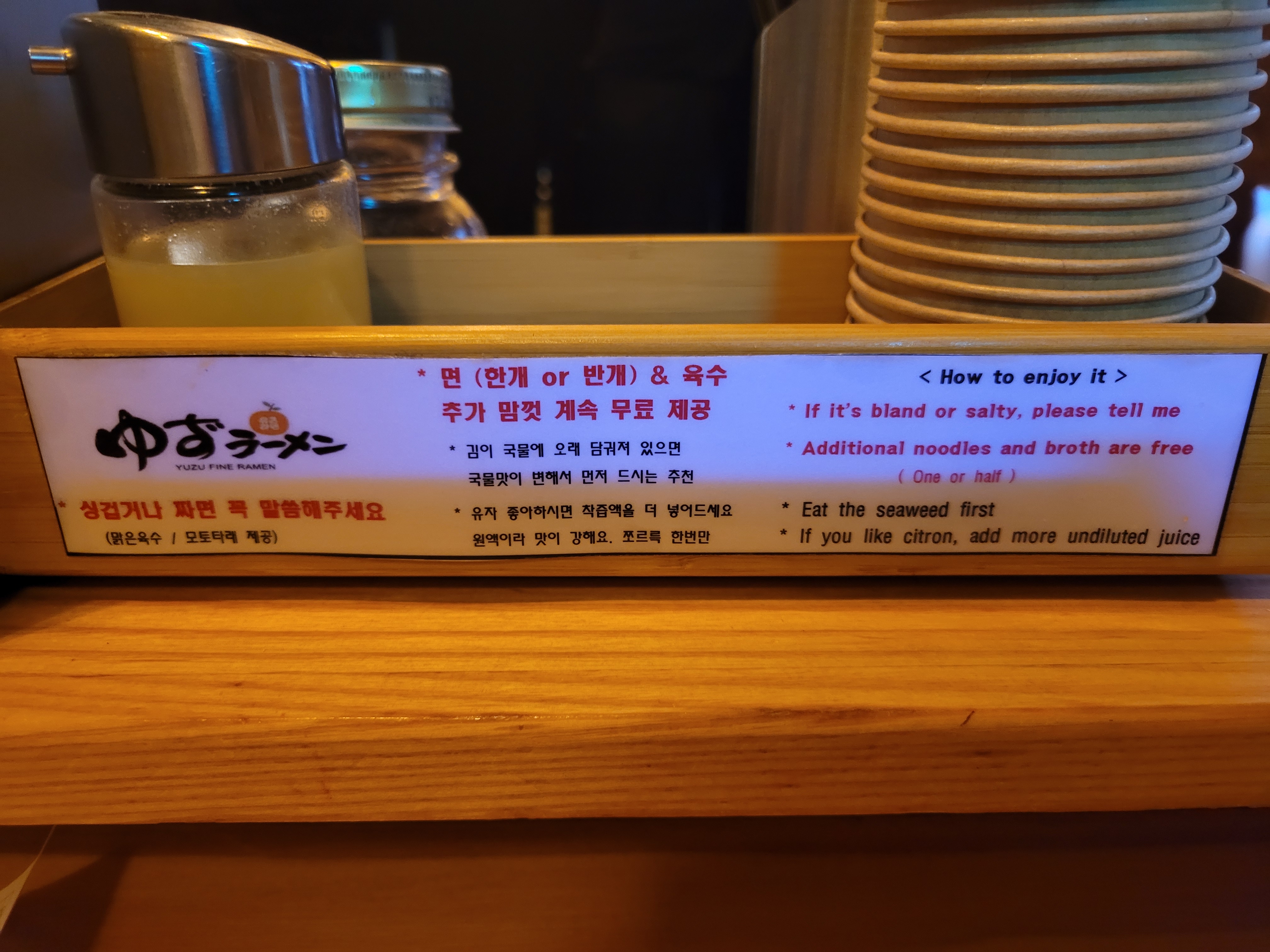 - 면과 육수는 무한 리필! : 입 짧고 소식가인 나도 유즈라멘만 가면 꼭 면 반개는 추가해서 먹는다.